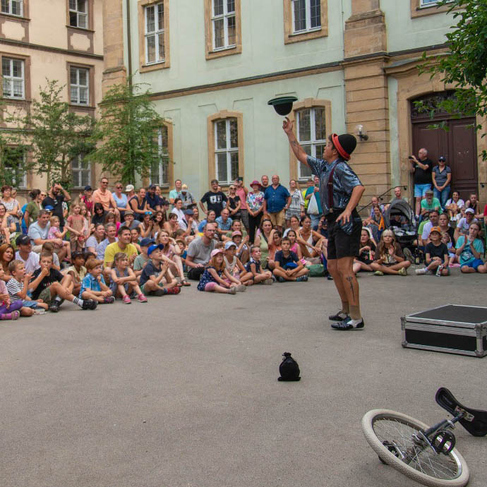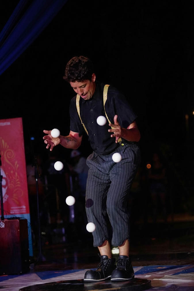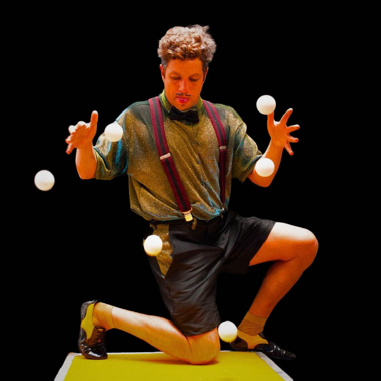 Un espectáculo dinámico que combina malabarismo, manipulación de objetos y humor, creando una propuesta visual y participativa para todo tipo de público.